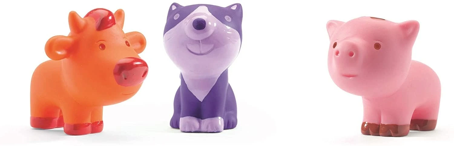 Beautifully decorated in a country farm theme (some sides with numbers), these boxes can stack into a tower or nest together, each animal fits inside. Stack the six sturdy cardboard blocks to make a tower for the six included soft vinyl animals to play peek-a-boo or nest the cubes inside each other for easy storage.